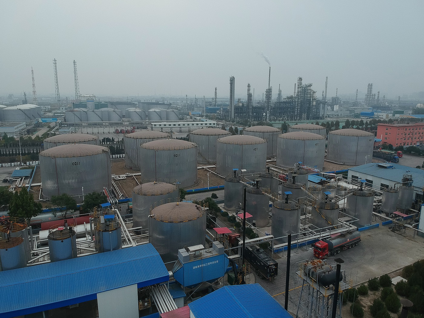 生產加工基地地理位置優越,與各煉廠距離較近,瀝青周轉方便,倒運成本低,港口優勢明顯,有天然的地理優勢。且位于山東半島中部,地處魯中山區和魯北平原結合地帶,交通四通八達,公路、鐵路、海運方便。